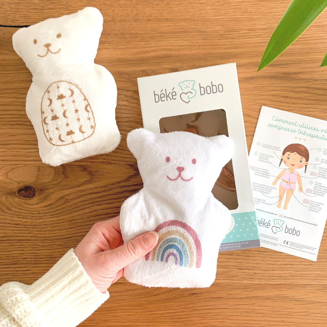Très facile d’utilisation, 30 secondes et il est prêt pour soulager! L’efficacité de l’ourson vient de l’osmose de l’humidité provoquée par la chaleur ou au froid. Cet ourson thérapeutique Béké-Bobo est classé instrument médical par Santé Canada. De plus, il possède le marquage CE d’instrument médical de l’Union européenne. En dehors de ses bienfaits pour réduire les maux de ventre, les otites, les ecchymoses et les bobos de la vie de tous les jours, il peut être un gros plus pour les petits anxieux. Son poids et sa taille ont été étudiés pour procurer au tout-petit un maximum de confort. Très utile dans la routine du dodo ou lors d’une crise pour aider à se détendre. On a simplement à le placer sur la cage thoracique chaud ou froid de l’enfant pour l’apaiser. En effet, par le poids de l’ourson, l’enfant prend conscience de sa respiration et ralentit celle-ci de façon automatique. Il est facile à manipuler. Il exprime sa personnalité avec une variété de motifs ludiques imprimés sur un tissu doux et réconfortant. Voyez tous les avantages de notre petit ourson ici. La dimension de l’ourson représente la taille rassurante de la main d’une maman. Et son poids lui permet d’être placé sur l’abdomen d’un tout-petit en toute sécurité. Grâce à sa housse amovible de l’ourson est lavable à la machine. Ainsi, votre enfant pourra compter sur lui très longtemps ! Mais attention, sa pochette de céréales ne doit jamais être mouillée et encore moins passer à la machine. ;) L’ourson thérapeutique Béké-bobo est le sac santé pour les bambins préféré des parents depuis 24 ans !Avertissements