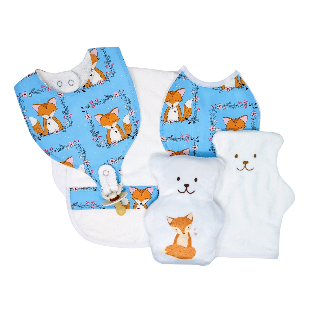 Nuestro pequeño babero protege la ropa del bebé de la baba y los vómitos. Ayuda a absorber la saliva de tu hijo cuando le están saliendo los dientes.