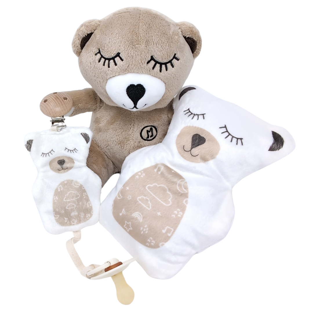 Y, como todos los productos elaborados por Béké-Bobo, ¡nuestros sets de regalo tienen una firma visual única! Encuentra nuestro adorable osito terapéutico en varias formas: como compresa fría y caliente e incluso como una toallita ultra linda.