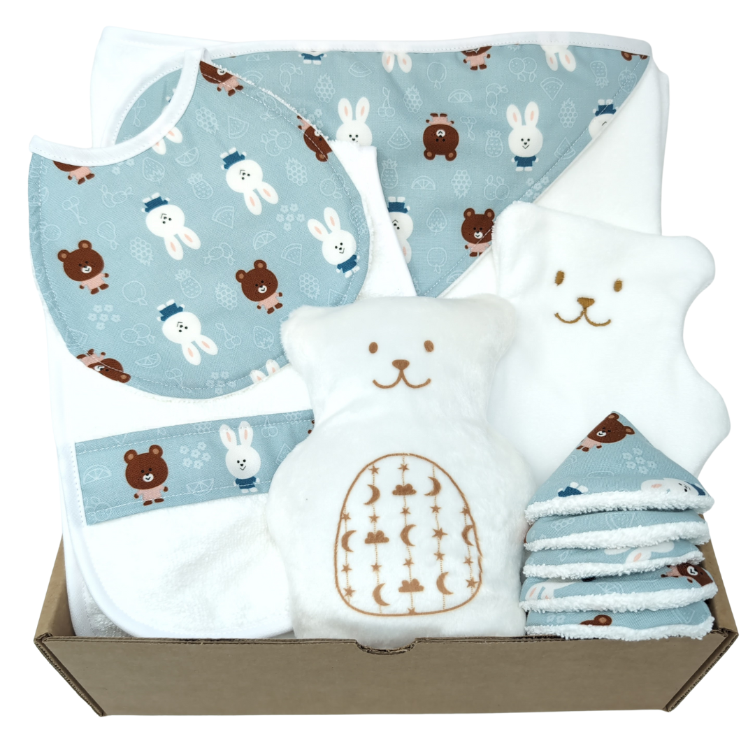 ¡Diseñados para la vida real, nuestros sets de regalo están diseñados para ser realmente utilizados! Ya sea un babero, una capa de baño, un osito de peluche terapéutico o un paño para eructar, cada producto incluido en nuestros sets de regalo está pensado para ser verdaderamente útil.