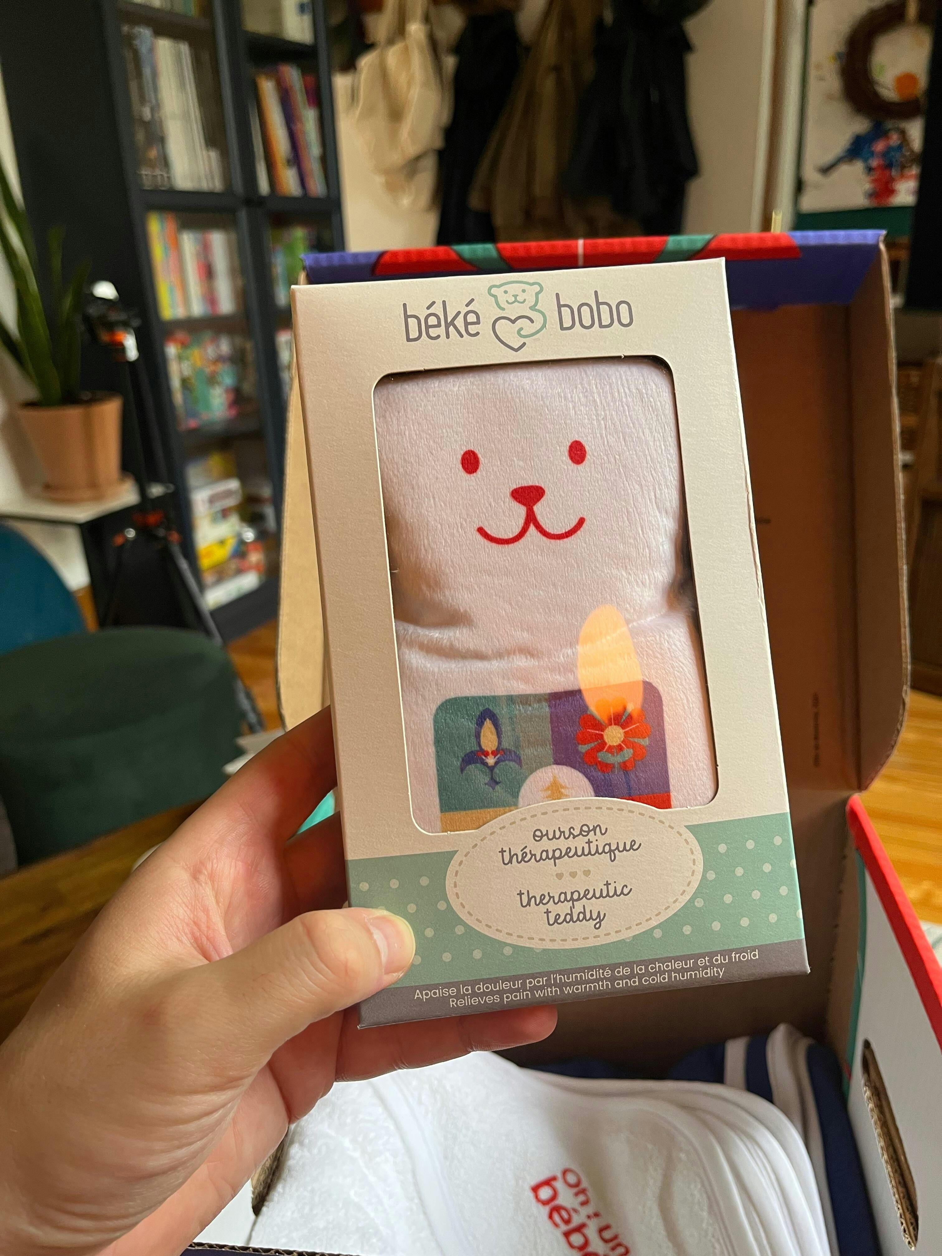 Con su tejido suave y sus divertidos patrones, el oso Béké-bobo es un compañero juguetón y tranquilizador para los más pequeños. Su tamaño se adapta perfectamente a la mano reconfortante de una madre , mientras que su peso ligero permite colocarlo de forma segura sobre la barriga del niño. Además, su funda desenfundable es lavable a máquina, garantizando a tu hijo un fiel compañero durante muchos años. ¡Sólo ten cuidado de no mojar la bolsa de cereal que está en el interior! Desde hace 25 años, el osito terapéutico Béké-bobo es el neceser de salud favorito de los padres, aportando bienestar y comodidad a los más pequeños de todo el mundo. Lea nuestra historia . Conviértalo en un artículo imprescindible para su familia o regálelo a sus seres queridos.Advertencia